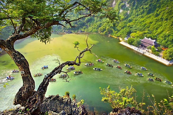 14:00 Leave for Trang An eco - tourism attraction. You will be amazed by neglected area while having a boat trip through cave chains: Sang cave, Toi cave, Ba Giot cave.....experiencing mysterious views of the so - called ( Ha Long Bay in Land )